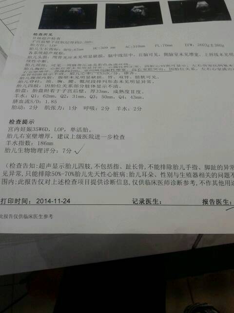 求医生帮帮我看看我胎儿怎么样?发育正常吗?胎儿右室壁增厚7mm对宝宝有什么影响??
