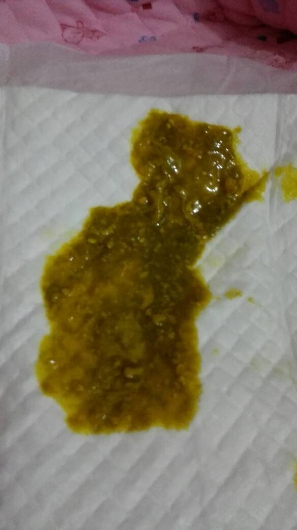 大家帮忙看看我家宝宝拉这样的粑粑是怎么回事?一开始拉的黄色就是有些黏最后就拉绿色的粑粑还带奶瓣,现