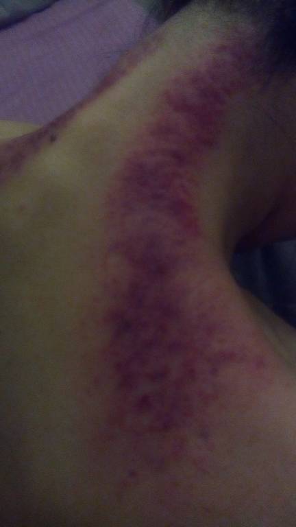 刮痧完这样,应该怎么治疗呢 刮痧完这样,应该怎么治疗呢 点击展开 尐槑瓜*^﹏^* 2014-11-21 22:26 为您推荐: 其他回答 这种情况是刮痧以后损伤毛细血管引起的,48小时内不能沾水,不管它,过几天就会消掉。 zengjian1981 2014-11-21 22:28 相关问题 孕妇怀孕8周发烧38度4,能刮痧治疗么? 月经期间刮痧了怎么办 怀宝宝七个月、'刮痧刮了