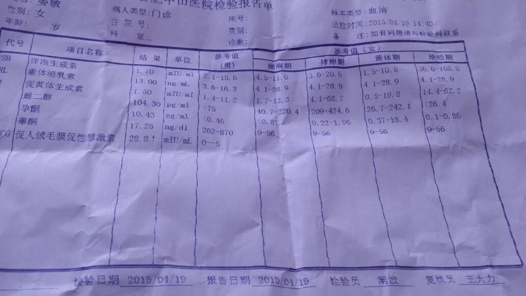 我末次月经3月23号,这是今天抽血化验单,医生说黄体酮和hcg都偏低了,让我打黄体酮保胎,这样就可 我末次月经3月23号,这是今天抽血化验单,医生说黄体酮和hcg都偏低了,让我打黄体酮保胎,这样就可以了吗? 点击展开 雨一直下0615 2016-06-22 19:49 为您推荐: 其他回答 黄体酮和hcg都偏低可能会导致流产的,打黄体酮保胎是可以的,注意卧床休息,不要过度劳累。注意复查,忌食辛辣生冷食物。祝您健康 可爱的笑娟 2016-06-22 20:32 相关问题 24号抽血hcg 是8890,因为有褐色东西,所以吃了黄体酮保胎,今天hcg 有21490正常吗 孕8周,下午开始流少许竭色的血,到现在用纸擦一直有像月经快干净时淡淡的 打了针hcg保胎,一直躺在