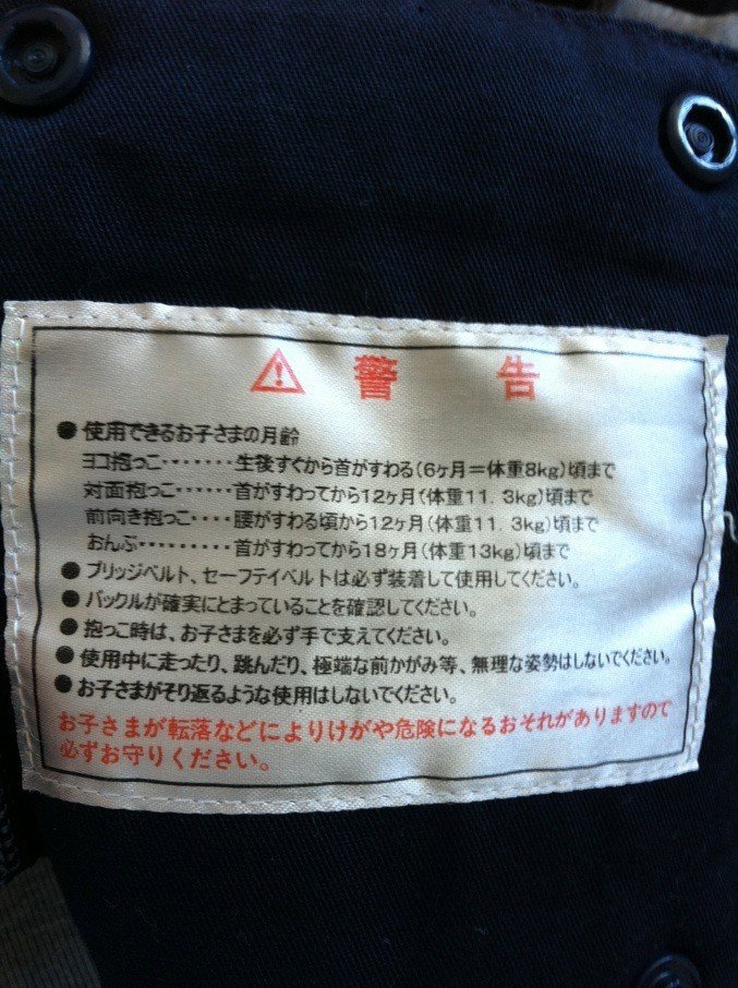 横抱,新生儿到脖子可以自己立起来(6个月体重8公斤)为止 对面抱,从脖子可以自己立起来到1岁体重11公斤为止 宝宝脸朝前方抱,可以自己坐起到1岁体重11公斤为止 背宝宝,从脖子立起到1岁半体重13公斤为止。 请把腰带等安全扣扣好 抱宝宝的时候一定要用手扶好 等等