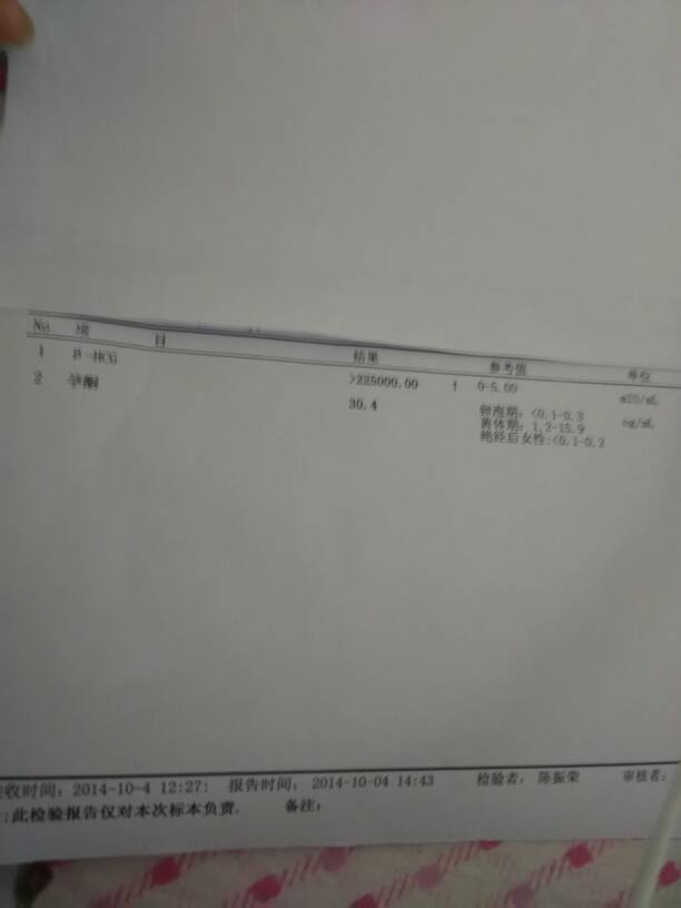 你的检查的结果,hcg的含量就是有22万以上,这样的话就是很高,您要注意这样的结果不能说就是很正常,您要检查B超看看是不是有葡萄胎的可能,B超检查没有异常的话还是可以,但是孕酮不是很高,要注意及时的补充,是葡萄胎及时治疗