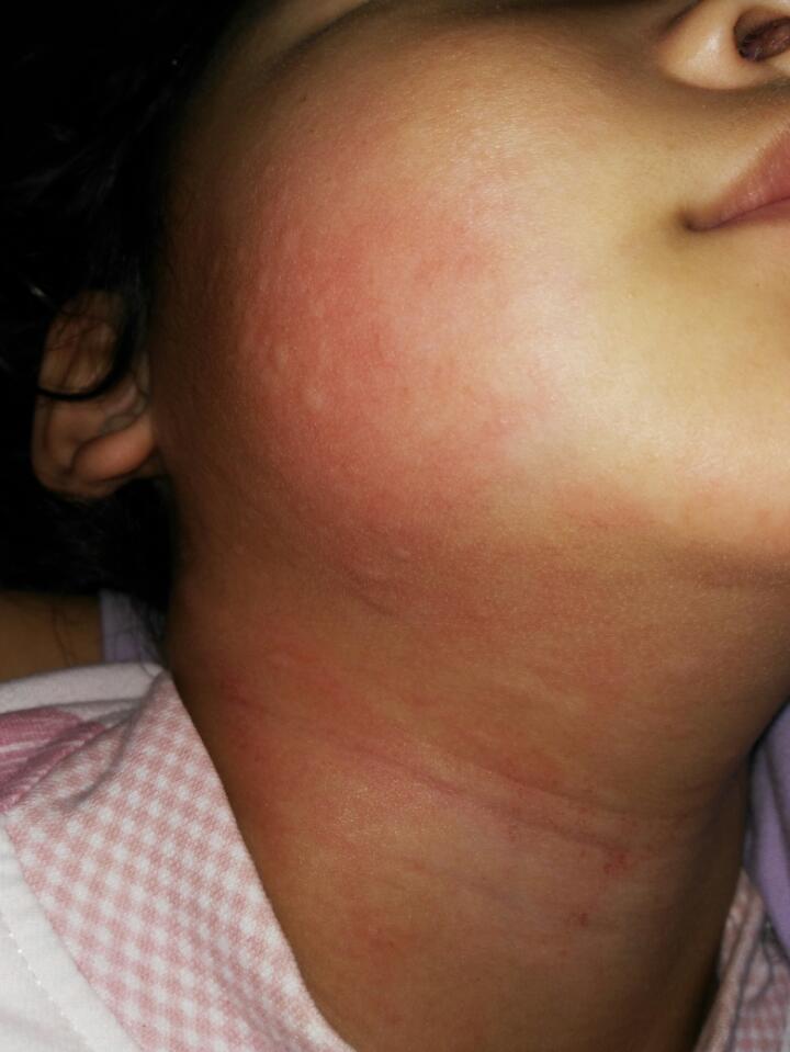 宝宝身上隐在皮肤上的疹子,不红,但是很痒以前有过头孢过敏,但是昨天并没有吃药,抓了之后成大片块的 宝宝身上隐在皮肤上的疹子,不红,但是很痒以前有过头孢过敏,但是昨天并没有吃药, 抓了之后成大片块的了 点击展开 沁沁♡么么 2015-11-05 09:19 为您推荐: 其他回答 不太清楚。 随缘好 2015-11-05 12:52 有点像荨麻疹,去皮肤科做测试吧 爱你所优差 2015-11-05 11:34 去医院。。。 看看海 2015-11-05 10:59 可能是风疹,或是小儿急疹,去医院看下吧! 猫宝儿 2015-11-05 10:33 相关问题 4月大的婴儿,用的贝亲乳胶奶嘴,腿上有大片疹子,有可能是乳胶过敏吗? 孩子化脓性扁桃体,吃头孢克肟过敏,建议停药,好不容易疹子没 孩子头孢克肟过敏,症状是咽痛,全身小疹子