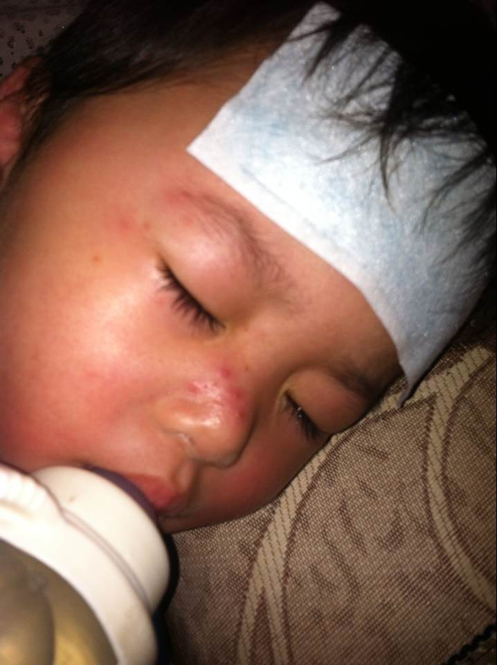 小孩2.5岁,昨天开始 鼻子上长了这个东西如下图,目前低烧38.2,打针吃药退不下来,再加上全身通