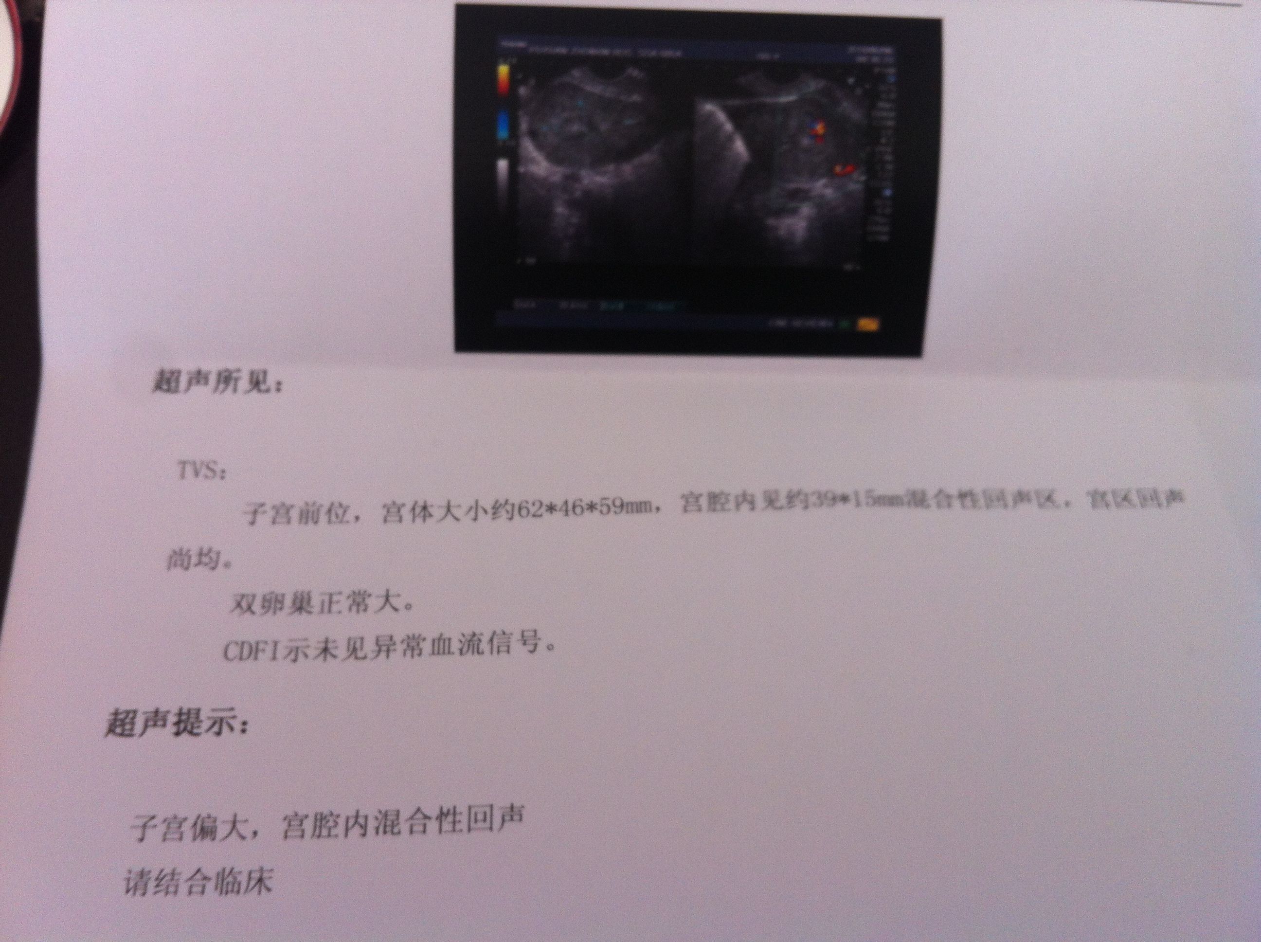 无痛人流15天了复查 医生说我宫腔内有淤血需要清宫,请问一定要清宫吗?子宫前卫,宫体大小约62*4 6*59mm,宫腔内见约39*15mm混合性回声区,宫内回声尚均。双暖巢正常大,CDFI示未见异常流血信号? 点击展开 匿名用户 2014-06-06 12:11 为您推荐: 其他回答 清宫比较好,如果实在不想,建议吃益母草和五加生化,一周,复查B吃,如果还有,应该清 那寄翠_t3mA 2014-06-06 15:48 相关问题 无痛人流13天过后发现子宫还有淤血,然后做了清宫手术,人流后已经打了5天消炎针了,请问现在清宫还 有淤血就一定要清宫吗? 有淤血就一定要清宫吗?