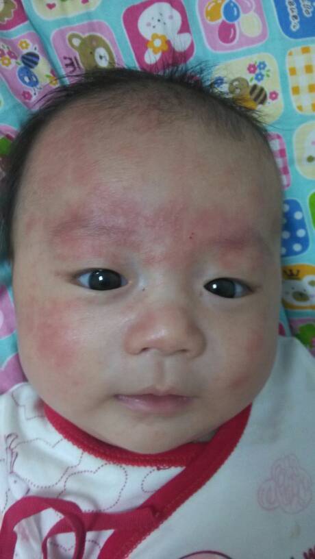 宝宝脸上成这样了!好心疼!三天前开始出现一点点,宝宝总爱用手去挠,到今天严重了,红一大片啊,怎么区
