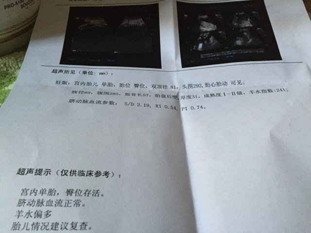 你好,你的情况考虑羊水过多,一般多见于孕妇糖尿病、ABO血型不合、妊高症、急性肝炎、严重贫血等,约18%-40%合并胎儿畸形,以中枢神经系统和消化系统畸形最常见。;多胎妊娠和巨大儿等也容易引起羊水过多。 你的情况,如果检查未提示有畸形的话,考虑问题应该不是很大,建议注意复查