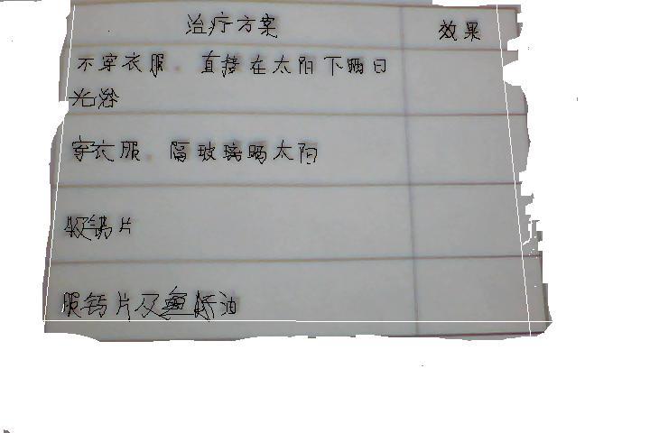 某婴儿患佝偻病 他的父母查阅有关资料 提出了四种治疗方案 点击展开 匿名用户 2012-07-10 20:33 为您推荐: 其他回答 晒太阳是指人皮肤直接接受阳光的照射。而且,每天照射的时间0.5~1小时。 补钙 鱼肝油 匿名用户 2012-07-10 21:33 相关问题 一婴儿患佝偻病,其父母查阅有关资料,提出四种治疗方案 请你预测这四种治疗方案的效果 16岁的青少年佝偻病鸡胸治的好吗 16岁的青少年佝偻病鸡胸治的好吗