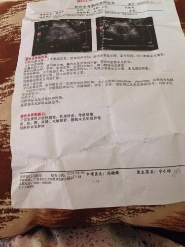 建议去进行手术,取出肌瘤,看上面有显示肌瘤的大小,有70和64毫米,还有一个看不清楚,像这个肌瘤的话,就大了,一般是大于5厘米的话,就要进行手术,不进行手术的话,会有疼痛的。