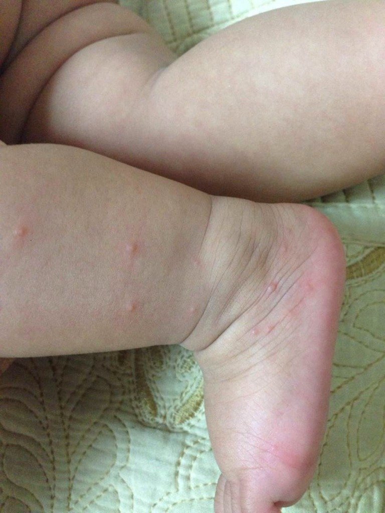 我家宝好像是蚊子咬的,刚开始有点硬,后面就是痘痘,今天我发现有点像水泡