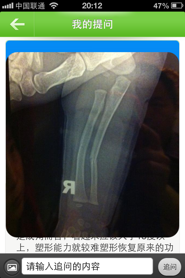 我想看看复位后的 看这个 复位后的应该可以 才1岁 首先这样的骨折不需要解剖复位 因为孩子成长特别快 有错位也会在成长中自行朔型 就算这个是复位后的片子 孩子活动也不会受影响 但是外形受影响 看起来畸形 不过随着成长 在10岁前就可以朔型几乎正常 夹板固定是必要的 因为孩子不可能老实的养伤 防止继续...