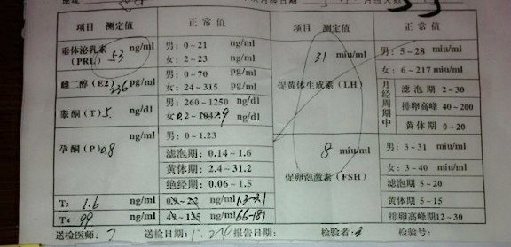 一般在月经干净后的3-7天检查是最准确的,您这个检查结果基本也显示了您的病症。LH比上FSH之值明显大于0,并且远远大于1.是典型的多囊卵巢的激素表现,还有就是泌乳素高,有可能垂体还存在问题,可以做脑部CT确定。您还需要做一个B超检查卵巢是否有多囊样改变。多囊卵巢是比较麻烦的一个内分泌疾病,但是并不...