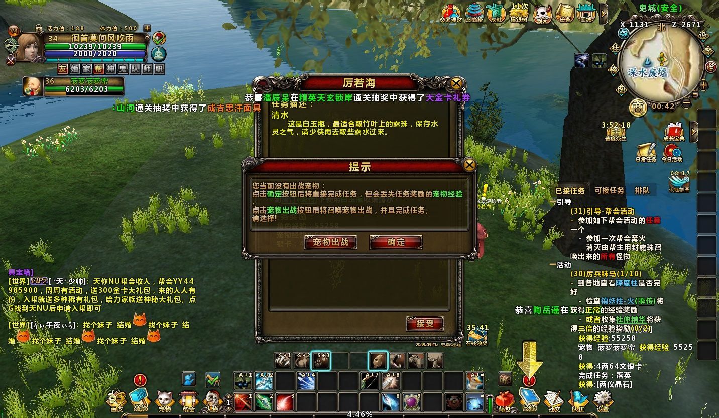 画皮世界上马后宝宝没了 如题,上坐骑后宝宝自动召回了,到交任务的时候又提示宝宝没有出战得不到经验,得下马重新召出宝宝,相当麻烦啊!!!之前玩的不会这样,这是怎么了 点击展开 匿名用户 2013-10-19 00:44 满意回答 你应该骑的是仙鹤吧,旧敢你做的是飞行坐骑,改坐陆地的就可以了,绣絮比方说马,机笼以匪械豹等等 匿名用户 2013-10-19 23:10 宝宝知道提示您:回答为网友贡献,仅供参考。 为您推荐: 其他回答 哇塞~~~~~~同意上面说的·~~· 匿名用户 2013-10-19 09:31 不要上坐骑就好了 匿名用户 2013-10-19 09:10 相关问题 为自己代言《画皮世界》爱宠宝宝知多少 为自己代言《画皮世界》爱宠宝宝知多少 画皮世界女神红包出的宝宝是什么样的