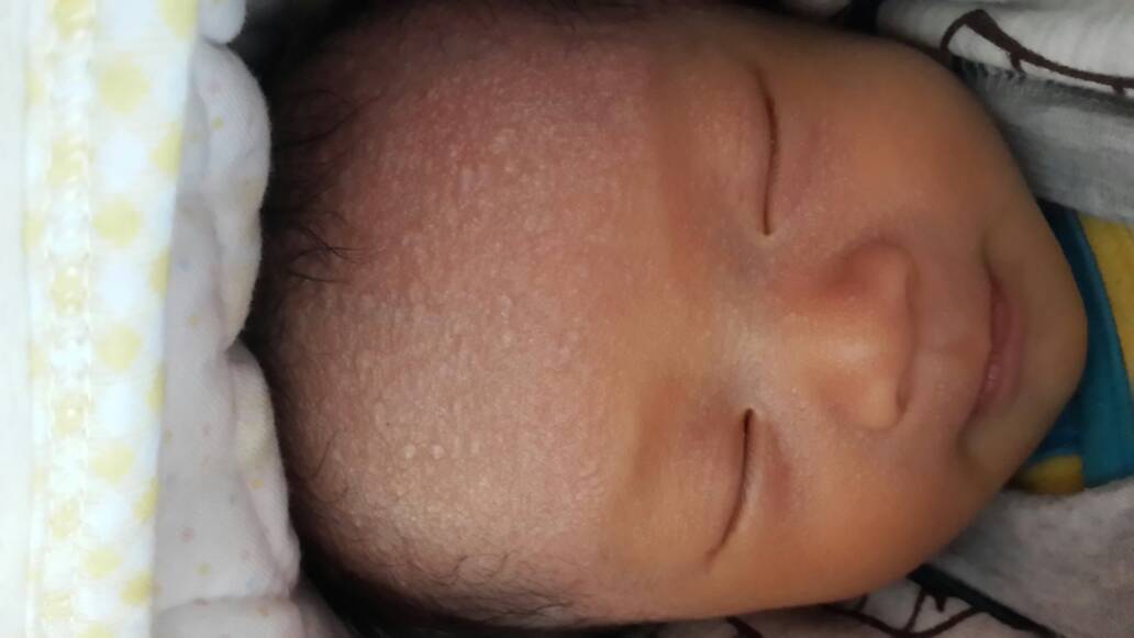 你好,这个叫汗疱疹,是因为出汗导致的,如果合并细菌感染会形成脓疱疮,你要注意不要让宝宝经常出汗,出汗或及时擦干就不会有这个了