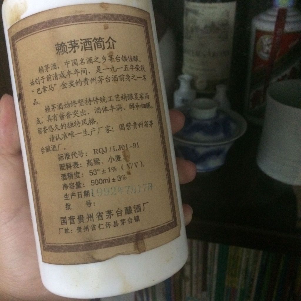 我目前吉安看到的赖茅不会有“酒”字,一般都是赖茅。还有导蛋贵州赖茅火起来的时间大概是09年以后。在贵州92年茅台都勒近厉很便宜,哪里有这个包装。