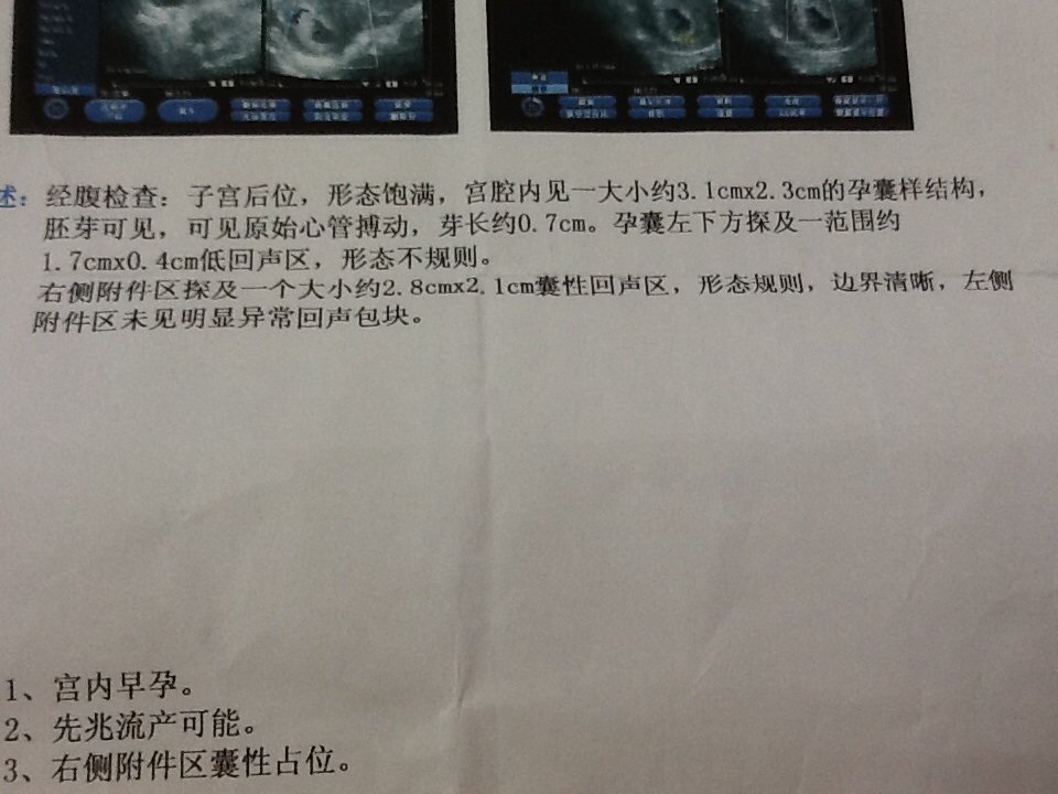 我想知道这是什么意思:是双胞胎还是长有其它什么:求解 点击展开 匿名用户 2014-05-23 16:58 为您推荐: 其他回答 病情分析: 你好,根据你的描述,不是双胞胎。 指导意见: 孕囊下方的那个包块可能是血肿,出血引起的。这种情况建议保胎治疗。 匿名用户 2014-05-23 17:05 相关问题 怀双胞胎会早产吗?我想知道下 我有15 岁的双胞胎女孩,我想离婚但对方不同意,我想知道我怎么办才能离婚,我只要孩子 我想知道汤镇叶的双胞胎儿子叫什么名字?
