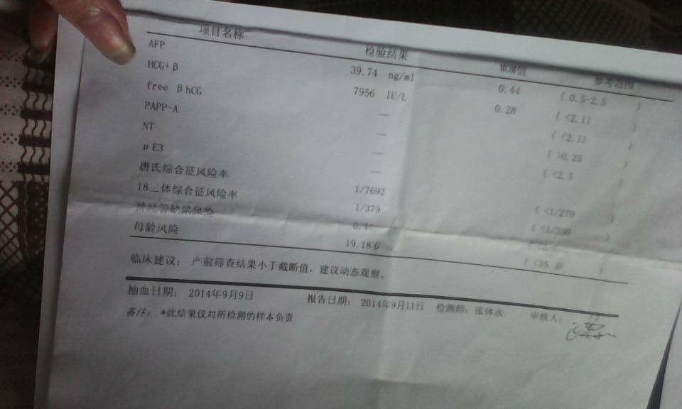 就是胎儿有可能发育畸形或伴有智力异常。建议做羊水穿刺确诊。