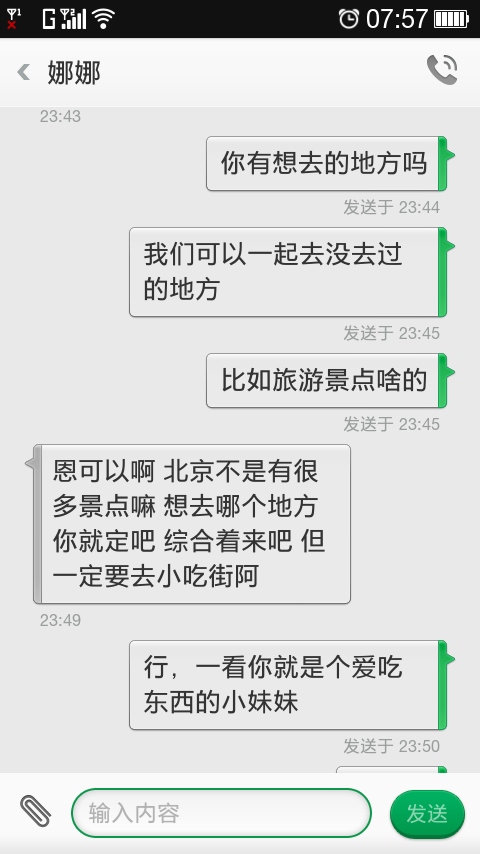 刚搬进合租房不久,昨天有个女孩想约我明天陪她逛街吃小吃,请问各位该怎么办? 点击展开 匿名用户 2015-06-14 08:00 满意回答 那就吃。。 匿名用户 2015-06-14 08:05 宝宝知道提示您:回答为网友贡献,仅供参考。 为您推荐: 其他回答 有个女孩想约我明天陪她逛街吃小吃, 如约而去 匿名用户 2015-06-14 08:19 有机会 匿名用户 2015-06-14 08:11 答应呗 匿名用户 2015-06-14 08:10 吃 匿名用户 2015-06-14 08:02 加载更多 相关问题 合租房的女孩晚上敲门,她第一次敲门说她要回家想把她东西放我这里,第二次又敲门说明天陪她逛街吃小吃 今天晚上出去逛街,逛了一个小时,然后喝东西,点了一些小吃,薯条,牛肉,热狗,热狗有点辣的,然后回到 我跟我老公现在异地分居,昨天跟那个合租的女的一起逛街,吃饭的时候那女的来了句,你老公吃饭都不挑食的