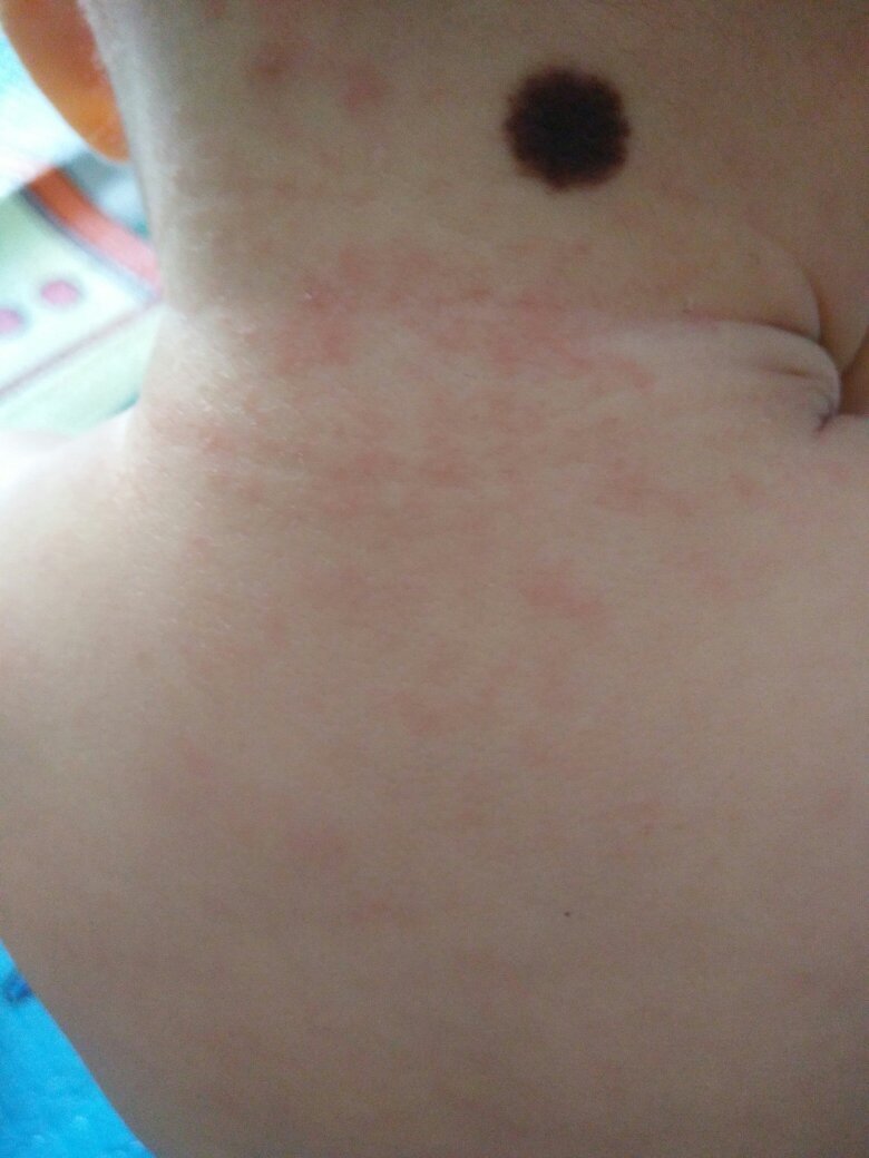 宝宝前两天发烧了,昨天脸上有红色的斑点!今天更多了!想知道是幼儿急疹出疹子吗?还是痱子! 点击展开 匿名用户 2016-07-07 09:27 满意回答 你好,考虑还是发烧引起的幼儿急疹,可以应用抗病毒药物治疗。 2016-07-07 09:28 宝宝知道提示您:回答为网友贡献,仅供参考。 相关问题 宝宝脸上红点点是痱子吗 是不是出疹子了,幼儿急疹啊 宝宝发烧四天了,老是反反复复,疹子也不出来怎么办呀