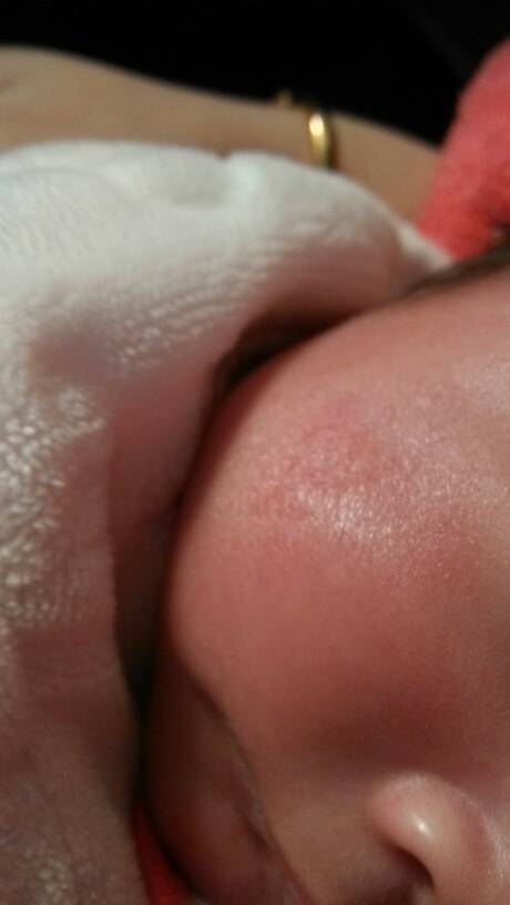 感觉像湿疹,图片不是很清楚,宝宝小很容易起湿疹,不要捂到,总出汗就爱起