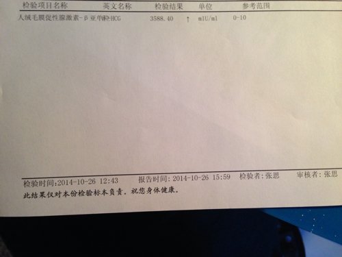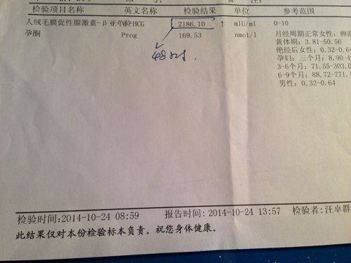 你好,我是23号医院检查尿怀孕了,23号下午检查血,24号取血结果,孕酮169.53医生说正常,人 你好,我是23号医院检查尿怀孕了,23号下午检查血,24号取血结果,孕酮169.53医生说正常,人绒毛膜促性腺激素2186.10.医生说25号再来检查下人绒毛膜促性激素,25号下午检查,26号今天取了结果,指标是3588.40.医生意思说48小时没有翻倍增长,说可能宫外孕,吓坏了,让明天去做B超,宫外孕机率高吗,好害怕,而且我这没一个月呢,能检查的出来宫内宫外吗? 点击展开 匿名用户 2014-10-26 17:23 为您推荐: 其他回答 你好你的数值来看都偏低,是有宫外孕的可能性啊, 建议继续观察,一周后再次做个血液HCG和B超检查判断的 儒雅的曾999 2014-10-26 22:07 相关问题 最后一次月经5月25号,7月1号检查,怀孕了,血HCG 868 70,孕酮4 030,医生说不能确 你好,郑医生,谢谢你的解答 我还想问问,我上次怀孕是在两年前,就是因为孕酮太低等原因没保住 我想这 医生你好,怀孕60多天了,前几天一直很好,今天突然兴奋高兴,结果上厕所护垫上有两滴鲜红的血过了