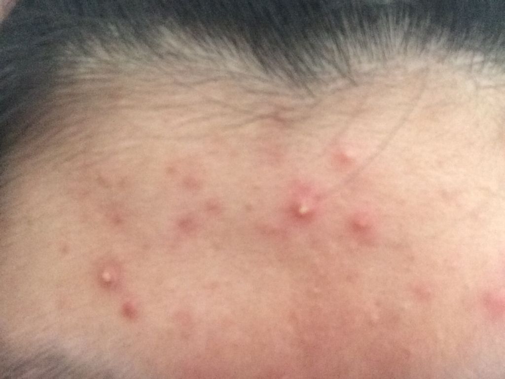 额头长包 一碰就疼本来是干性皮肤,现在额头早上会出油 月经不正常 最近一年总是两个月一次 查了