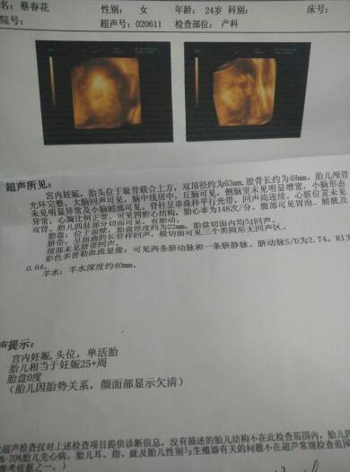 你好,报告单显示宝宝发育正常,以后7个以内每月检查一次;8-9个月时,应每半个月检查一次;最后一个月应每周检查一次。如遇特殊情况,应随时去医院检查。按时检查,保持心情愉快对宝宝才是最好的。