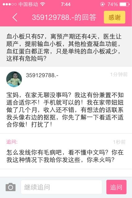 发现有的人就知道做广告,特讨厌,别人急死了,她还有心情发这个,好意思…??? 发现有的人就知道做广告,特讨厌,别人急死了,她还有心情发这个,好意思…??? 点击展开 木日勿 2014-10-03 07:46 为您推荐: 其他回答 保持好心情 一颗心、只装伱一个人 2014-10-03 17:04 别急,宝妈,你现在要保持心情愉快,宝宝可以感受到的哦 小宝她妈咪 2014-10-03 11:10 别急,宝妈 小森仔 2014-10-03 10:10 讨厌……… 滚了的人绝不再看第二眼 2014-10-03 09:24 傻逼 不知道 哪个轻 哪个重 &世界哪有真情& 2014-10-03 08:40 加载更多 相关问题 有没有宝妈每天在清洗乳头的时候心情感觉很烦很讨厌的感觉啊? 每天心情不好,奶也不够孩子喝,烦 讨厌老婆子!