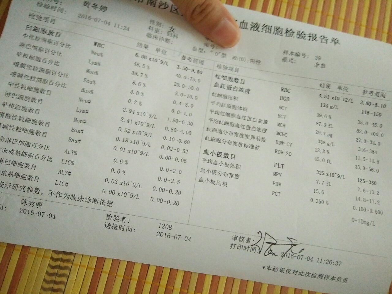 血常规检验报告怎么看??? 血常规检验报告怎么看??? 点击展开 missb 2016-07-07 14:54 为您推荐: 其他回答 有向上的箭头,说明你那项高,有向下的箭头,说明你那项低,后面有参考值,前面是你的检查结果,你这还不错,向上向下的箭头都没有 A@睿睿妈咪 2016-07-07 15:04 问医生吧, 明天更好, 2016-07-07 15:02 问医生。。 偏爱蕾 2016-07-07 14:58 不会aa a 小蒙恩妈妈 2016-07-07 14:58 问问医生看看 陌上花开hhgui 2016-07-07 14:58 加载更多 相关问题 咨询血常规检验报告单怎么看 我上次月例假是8月15号来的,这次例假延迟一测居然怀孕了,今天去医院检查做了血常规,医生看了检验报告说宫外孕的可能性比较大,还说检验血不好,慌兮兮的 孕36加3,血常规检验报告单,大夫说血红蛋白值偏低太多,让补铁,说缺铁容易大出血啥的,真的有那么严重吗?该怎么补?我的血红蛋白值是不是真的偏低很多?