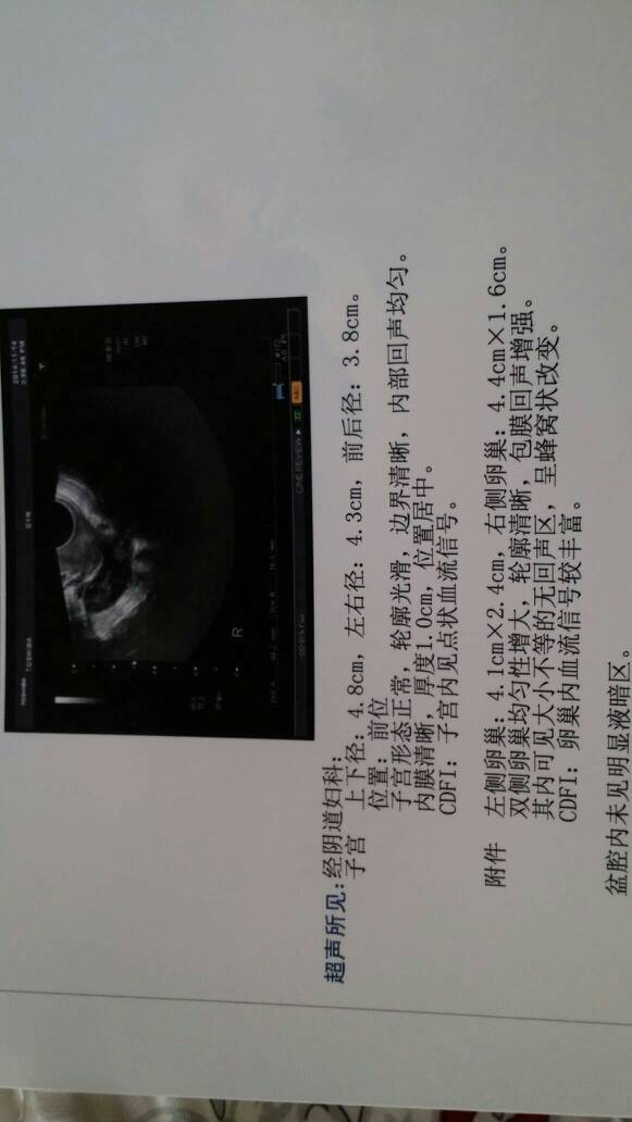 月经推迟近十天,月经后第三天去做的阴超 见图 请帮忙看看有什么问题 谢谢! 月经推迟近十天,月经后第三天去做的阴超。见图。请帮忙看看有什么问题。谢谢! 点击展开 543654820 2014-11-15 09:58 为您推荐: 其他回答 根据报告单来看你没有怀孕,考虑月经来临了。妇科各器官发育正常。 lijie020826 2014-11-15 10:00 相关问题 我月经11月25号来的,12月没来,到今天都没来,我今天测了一下呈阴,我每个月月经都来,最多推迟了 现在晚上睡不着,肚子有时候像痛月经一样,阴痛,也没什么大问题 自然流产中,还在流血排物,医生喊我做阴道彩超看看子宫还有东西没,像月经一样的流血中能做阴超不?