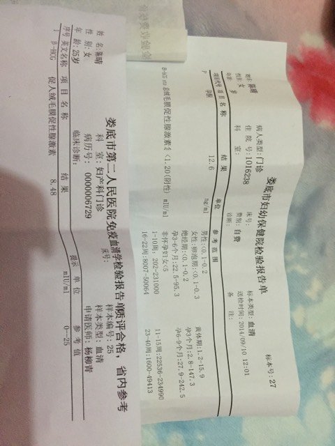 第一张血检单是以前在妇幼保健院验的,医生说没怀孕,第二张是现在验的,我用验孕棒测的怀孕了医生说没怀 第一张血检单是以前在妇幼保健院验的,医生说没怀孕,第二张是现在验的,我用验孕棒测的怀孕了医生说没怀孕,我都被搞糊涂了 点击展开 娇娇汝 2015-03-07 17:46 为您推荐: 其他回答 尿孕检有一定误差,其准确性比血检差一些,根据化验单看不符合怀孕的情况, 爱狂风一样舞蹈 2015-03-07 17:50 相关问题 前两天用验孕棒验不出来 是验血验出来的 医生说我刚刚怀上 后来发现有点流血去医院看医生说我有点流 我4月30日来的月经,5月18日吃了一次避孕药,6月30日用验孕棒验没有怀孕,7日才验到自己怀孕了 上个月12号月经,30号同房见红,这个月现在也没有来月经,验孕棒也验了没有怀孕,是怎么回事