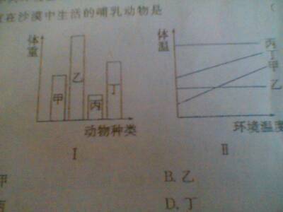 图中适宜在沙漠中生活的哺乳动物是? 点击展开 匿名用户 2013-10-13 11:45 为您推荐: 其他回答 乙,体重最重,储存的脂肪最多,耐饥饿。体温不随环境变化而变化,耐高温 母婴用户720068852 2013-10-13 12:37 甲:自身温度随周围温度变化 属于冷血动物 诸如沙漠蜥蜴等动物 而且身体体积又不算太大 易躲藏 望给好评 匿名用户 2013-10-13 11:56 乙 匿名用户 2013-10-13 11:54 乙 应为他的体重高,体温平衡 匿名用户 2013-10-13 11:50 艺 匿名用户 2013-10-13 11:47 相关问题 为什么鲸鱼是哺乳动物?为什么他会在海中生活? 如图甲是某雌性哺乳动物细胞生活周期中染色体数目变化图,乙图为另一雌性动物细胞分裂某时期的模式图.请 如图甲是某雌性哺乳动物细胞生活周期中染色体数目变化图,乙图为另一雌性动物细胞分裂某时期的模式图.请