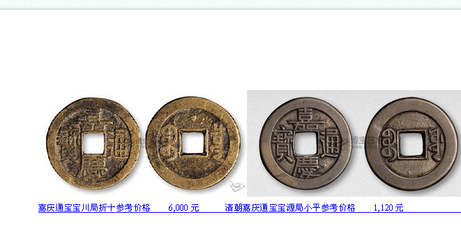 不知道楼主在哪儿找的资料,第一个嘉庆非川局的 是泉局的 背上星 这个还是比较多的;川局折十是套子 非流通钱,价在3000左右!!!!!