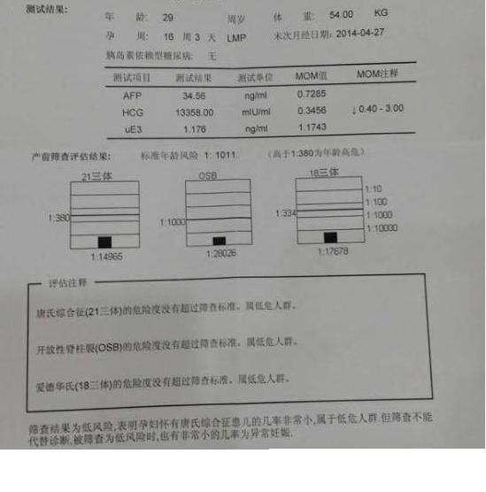 求助:唐氏筛查结果HCG偏低,怎么办? 求助:唐氏筛查结果HCG偏低,请专家给个建议! 女,29周岁 体重:54kg 怀孕16周+3天 HCG 测试结果 13358.00; MOM值 0.3456 参考值:0.40-3.00 谢谢各位专家! 点击展开 匿名用户 2014-08-20 17:58 为您推荐: 其他回答 你好,那些值没大关系的没有不适就好,主要是几个筛查的是低风险就好,后面还有重要的检查就是糖筛和大排畸要按时做 mi心有心愿 2014-08-20 22:48 相关问题 唐氏筛查HCG值偏低0 24,怎么办? 唐氏筛查HCG偏低一点怎么办? 唐氏筛查hcg偏低,为什么