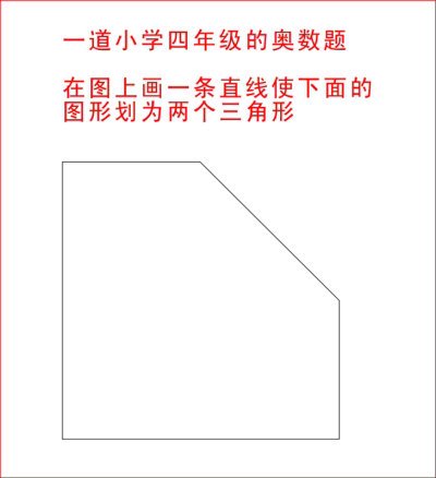 答案是斜画一条有宽度的粗线条,只留左上和右下两个三角形,这样的答案只有幼儿园的孩子可能有,大人的限制太多,不符合常规