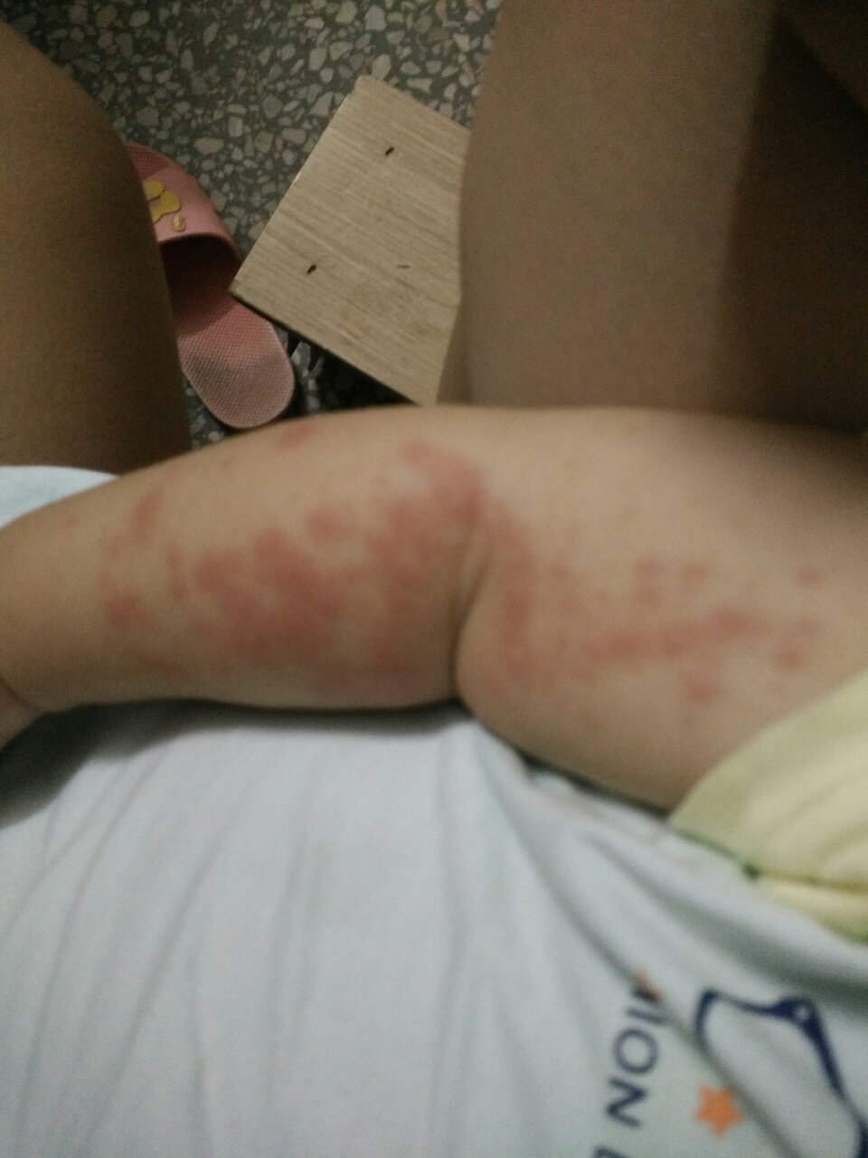 荨麻疹,我家宝宝脚上就起的这种,要擦药和吃药
