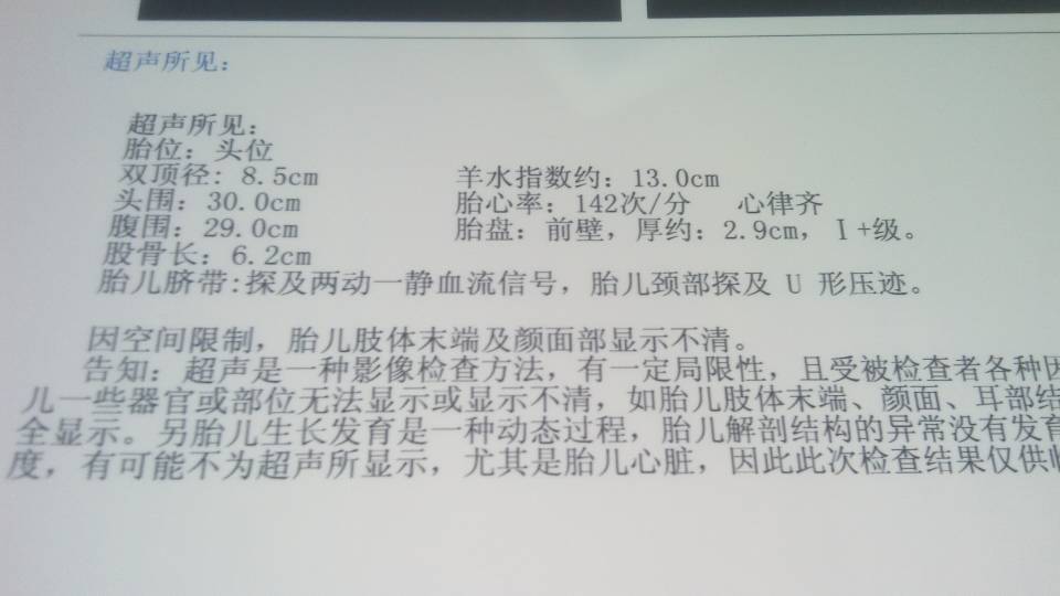 今天去做b超,医生没说胎儿多少斤,那位懂,可以告诉我吗? 今天去做b超,医生没说胎儿多少斤,那位懂,可以告诉我吗? 点击展开 ◤伊ω小默 2014-09-16 12:08 为您推荐: 其他回答 一般足月胎儿体重在5-8斤之间,这个时候5斤已经不小了。 崇晟儿 2014-09-16 12:45 你好,根据上述报告单的数据计算可以知道,胎儿体重大约在5斤左右。 崇晟儿 2014-09-16 12:10 相关问题 做b超,医生说胎儿偏小,看的懂的能帮我看看吗 孕29周需要做胎儿生物物理相评吗?今天产检结束了医生拿张单子让去做b超 很纠结要不要做这一项,因为