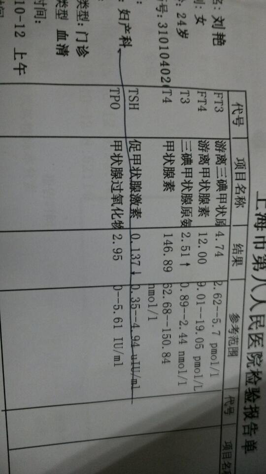 促甲状腺激素 O.137,可 T3 是2.51 是甲亢吗?对胎儿有影响吗?现在已经32 促甲状腺激素 O.137,可 T3 是2.51 是甲亢吗?对胎儿有影响吗?现在已经32周了。 点击展开 爱没那么简单_bHRW 2015-10-26 13:09 为您推荐: 其他回答 没事的正常 开心😄开心 2015-10-26 19:05 问问医生, 你还好吧 2015-10-26 16:51 不知道,, 旺仔妈咪!! 2015-10-26 16:05 问问医生吧 小策小宝 2015-10-26 15:42 祝你好孕。 钟爱一生_0aTj 2015-10-26 15:07 加载更多 相关问题 促甲状腺激素偏高点T3T4正常属于甲亢吗 我之前怀了一个流产了、现在怀起了有9周了但是检查出来自己有甲亢、现在在吃甲亢的药、我想问问对胎儿影 请问以前得过甲亢碘131好了一两年,现在我怀孕了有没可能复发,或对胎儿有什么影响?