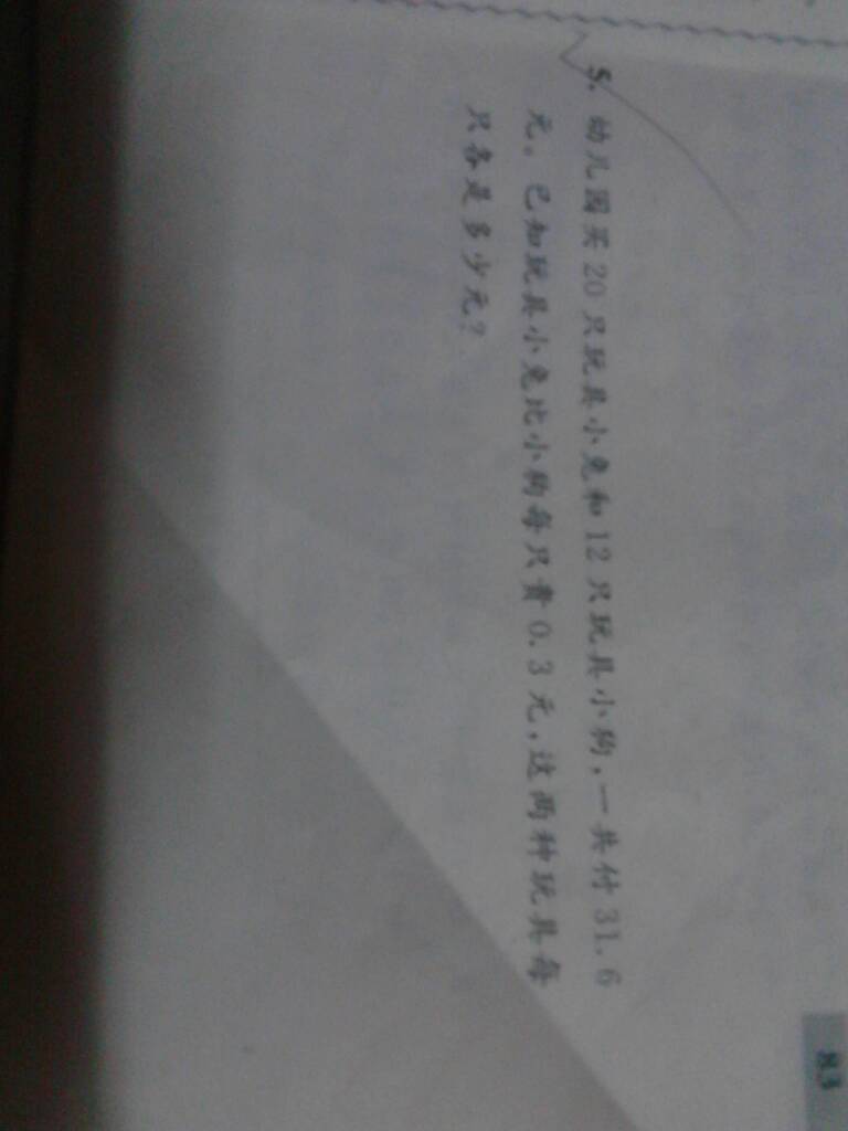 幼儿园买20只玩具小兔和12只玩具小狗,一共付31.6元 已知玩具小兔比玩具小狗每只贵0.3元
