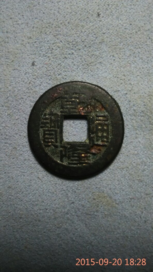 一枚乾隆通宝宝源局两点竖通,方头通,从网上搜了一边很像一枚母钱 请大家看看 字迹比较