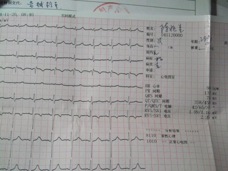 请哪位帮我解释哈心电图有什么问题?怀孕33周,3个月前都正常的! 请哪位帮我解释哈心电图有什么问题?怀孕33周,3个月前都正常的!怎么处理,需要复查什么? 一张原来 的,一张今天的。 谢谢,坐等! 点击展开 匿名用户 2015-03-10 18:50 为您推荐: 其他回答 你的心率有些快,有T波的改变,考虑有心肌缺血,在怀孕32到34周,是心脏负担最重的时候,可能心肌缺血是因为怀孕引起来的,问题不是很大,继续观察。 nicexiaoru 2015-03-10 20:33 相关问题 产检是必须的吗?我22周了没有产检过,像唐筛,心电图,血,尿,白带等都在四个月的时候做了,周围的宝 我现在怀孕两个月,每天觉得胃胀,怀疑是吃叶酸有关 请麻烦你帮我解释哈? 我怀孕十五周了,昨天去医院,医生让我查了一大堆,什么骨密度、心电图、微量元素、血常规等等…医生还说