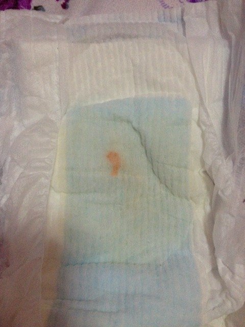 你好宝妈们求助,我儿子纸尿裤在他的小尿口(生殖器)对应的位置有个污点,我看不像血液,颜色一看是像橘