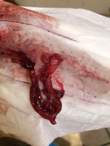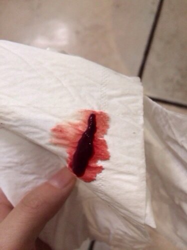 23号来的月经,今天25号14.30去厕所换姨妈纸,看到刚流出来一个这个,我有拿卫生巾搓了几下,就