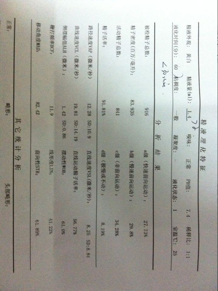 结婚到现在是8个来月了 打算要小孩到医院检查医生说 精子缺乏 肾精亏虚 平时熬夜抽烟基本坐电脑前 没有什么运动 可以这么治疗 点击展开 匿名用户 2014-05-20 00:57 为您推荐: 其他回答 结果还可以,数量还凑活,前向比例也不低,你在哪家医院做的检查,有没有做精子染色体检查的结果。你这个情况不用特意吃什么药,锻炼下身体,规律作息和饮食,别抽烟了,小半年就会改善。 旁春雨_ja1C 2014-05-20 01:31 相关问题 男友吸烟8年了,每天1包左右吧,又常熬夜,精子质量是不是会差?如果我怀孕了,生的宝宝会有什么影响或缺陷吗? 一周以前做精子活度无精子,一年前我媳妇子怀过孕,做精子活度之前连续四天熬夜,做这个检查之前取过前列 精子活力低能怀孕吗?刚结婚的小夫妻,可能是丈夫之前过度抽烟熬夜吧,这样他们还能要宝宝?