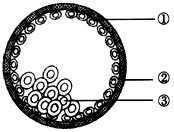 高等哺乳动物受精后不久,受精卵开始进行细胞分裂。经桑椹胚、囊胚、原肠胚和组织器官的分化,最后发育成一个完整的幼体,完成胚胎发育的全过程,下列有关叙述错误的是 [ ] A.上图是胚胎发育过程中囊胚期示意图,①②③依次称为滋养层、透明带、内细胞团 B.高等哺乳动物胚胎发育经历的时期是受精卵→卵裂期→桑椹胚→囊胚期→原肠胚期→幼体,其中,最关键的时期是原肠胚期 C.高等哺乳动物的细胞分化开始于囊胚期,终止于生命结束 D.进行胚胎分割时,应选择原肠胚期的胚胎进行