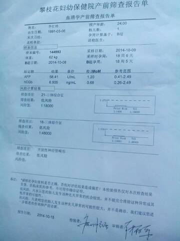 专业的医生给我看看唐氏筛查的结果吧 当时有急事拿了结果就没有给医生看 所以想请医生给看看检查结