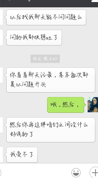 我一朋友有忧郁症吧,然后我就总问医生男朋友,结果他生气了,他不看重我朋友,所以也不在乎我吧,什么意
