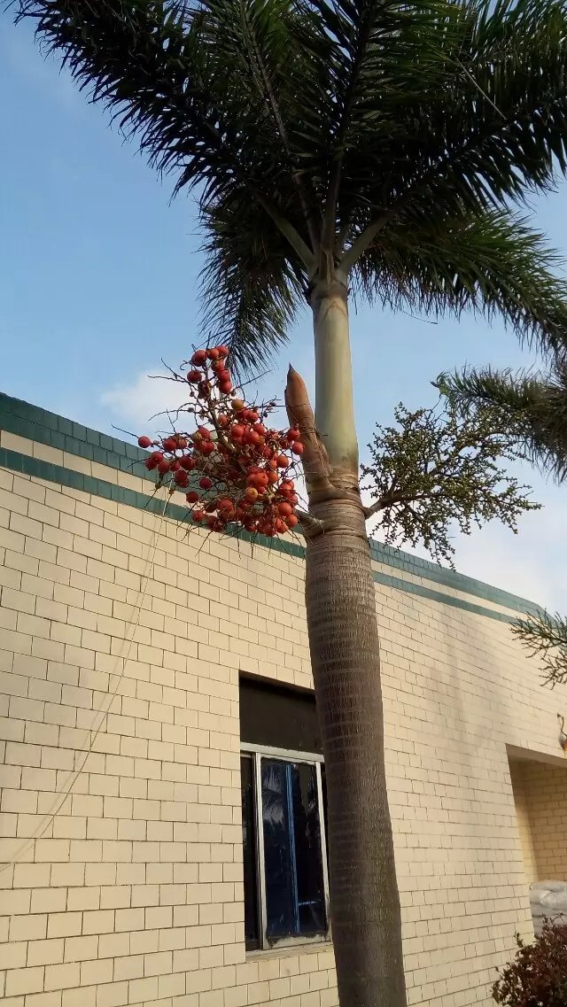 大王椰子树 学名:Roystonea regia 科名:棕榈科 别名:文笔树 单干直立,干高可达18公尺,上具环纹,中央部分稍肥大,膨大部分是含水多的地方,乃为适应旱地生活所产生。茎底部常长出一些不定根。大王椰子为高大乔木,高达20米,胸径30-40厘米,茎灰白色有环纹,中部常膨大。叶鞘绿色,光滑,...