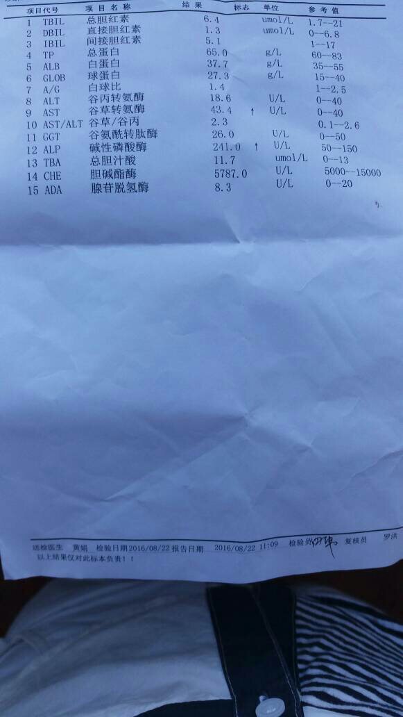 孕妈谷草转氨酶43.4和碱性磷酸酶242,严重不? 孕妈谷草转氨酶43.4和碱性磷酸酶242,严重不?已经怀孕39周,医生建议马上剖腹产!我想顺产! 点击展开 匿名用户 2016-08-24 07:50 满意回答 你好啊,你可以让他用点催产醋试试吧!催催产。 cn#aQLkakGfak 2016-08-24 07:54 宝宝知道提示您:回答为网友贡献,仅供参考。 相关问题 8个月大的宝宝谷草转氨酶51、线粒体谷草转氨酶24、碱性磷酸酶185、 孕妈谷草转氨酶43 4和碱性磷酸酶242,严重不? 碱性磷酸酶、谷草转氨酶偏高怎么办