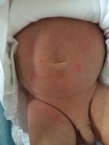 我家宝宝出生23天,昨天发现他肚脐眼周围起来好多红红的,这是疙瘩吗?这是什么原因?是纸尿裤捂的吗?